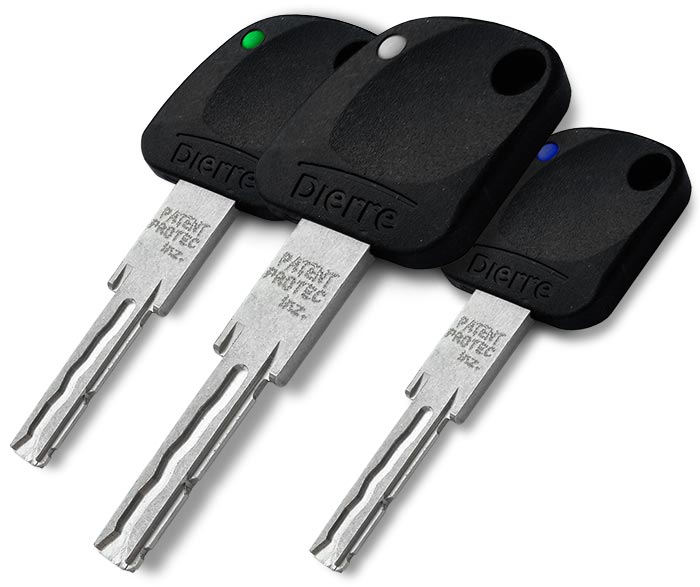 Ключі циліндра реверсивні — їх можна вставляти в циліндр будь-якою стороною. Крім стандартних ключів, можна замовити складні ключі, що працюють за принципом викидного ножа — після натискання кнопки ключ викидається з ручки.